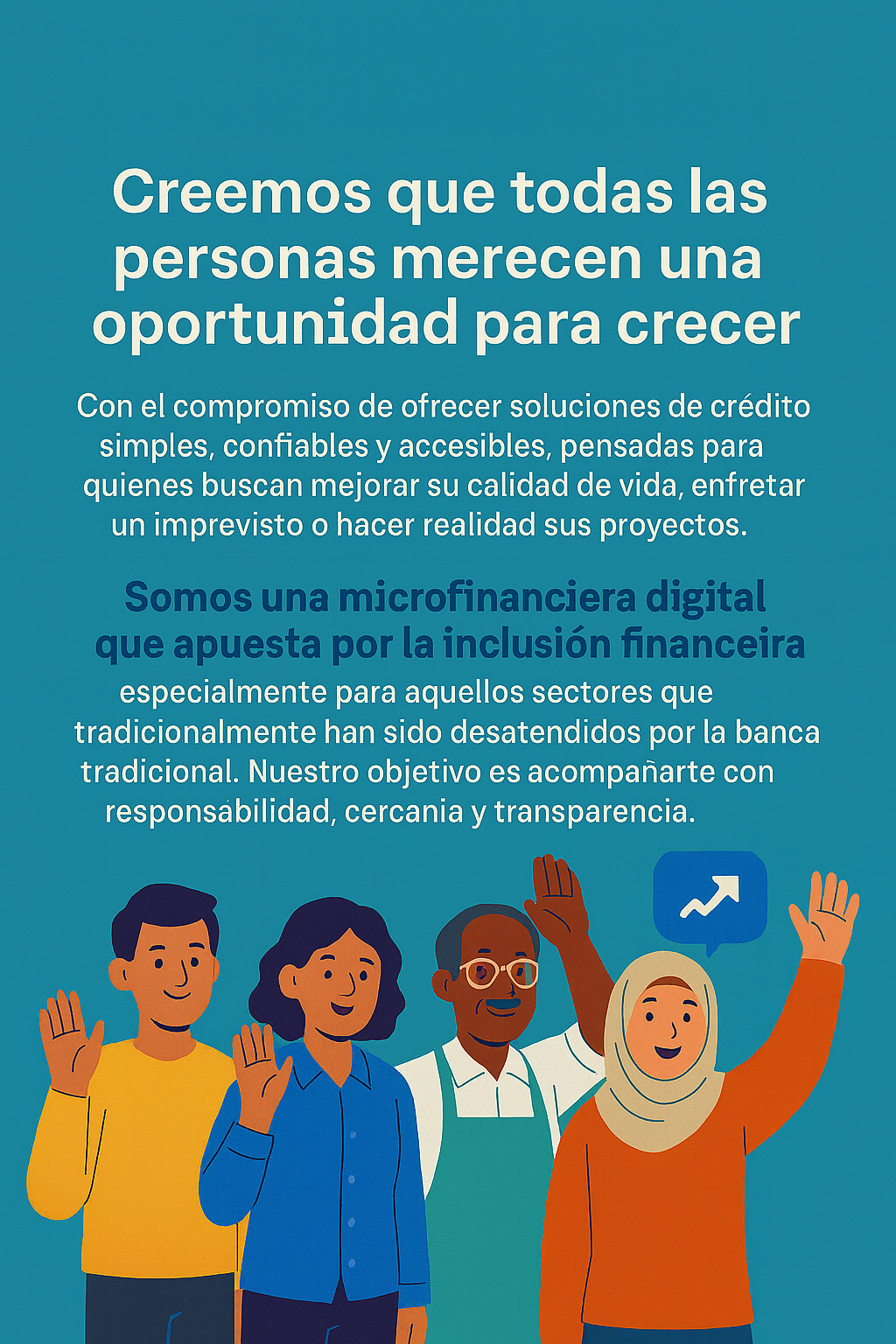 especialmente para aquellos sectores que tradicionalmente han sido desatendidospor la banca tradicional. Nuestro objetivo es acompañarte con responsabilidad, cercanía y transparencia.